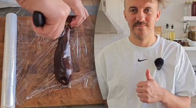 Zwei schnelle und einfache Methoden, um das Fruchtfleisch aus einer Aubergine zu entfernen. Link kopiert Wie man Auberginen aus den Kernen schält / Collage