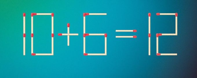 Unten sehen Sie ein Bild, in dem die Gleichheit 10+6=12 mit Hilfe von Streichhölzern dargestellt ist. Offensichtlich ist sie mathematisch nicht korrekt. Sie müssen es korrigieren.