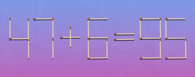 Wir haben also ein Bild erstellt, in dem Streichhölzer die Gleichheit 47+6=95 darstellen. Offensichtlich ist hier etwas falsch, denn die Antwort sollte 53 sein.