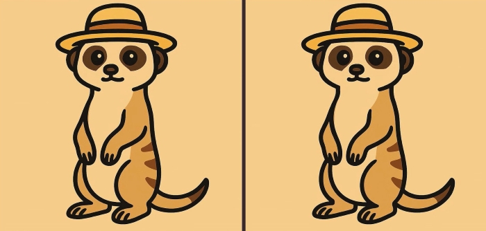 Sind Sie also bereit für die nächste Herausforderung? Schauen Sie sich die beiden Bilder eines Erdmännchens mit Hut genau an. Auf den ersten Blick mögen sie gleich aussehen, aber es gibt 3 kleine Unterschiede. Glaubst du, dass du sie alle in 49 Sekunden finden kannst? Probiere es aus und teste deine Sehschärfe!