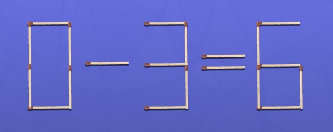 Auf dem Bild unten sehen Sie die mathematische Gleichheit 0-3=6, die aus Streichhölzern besteht. Offensichtlich gibt es hier einen Fehler.