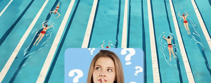 Unten siehst du ein Bild mit einem Schwimmbad. Auf den Bahnen schwimmen Menschen. Es scheint ein ganz normaler Tag zu sein, was ist daran so seltsam? Aber es gibt eine kleine Nce, die das Bild „verdirbt“. Sie müssen herausfinden, worum es sich handelt.