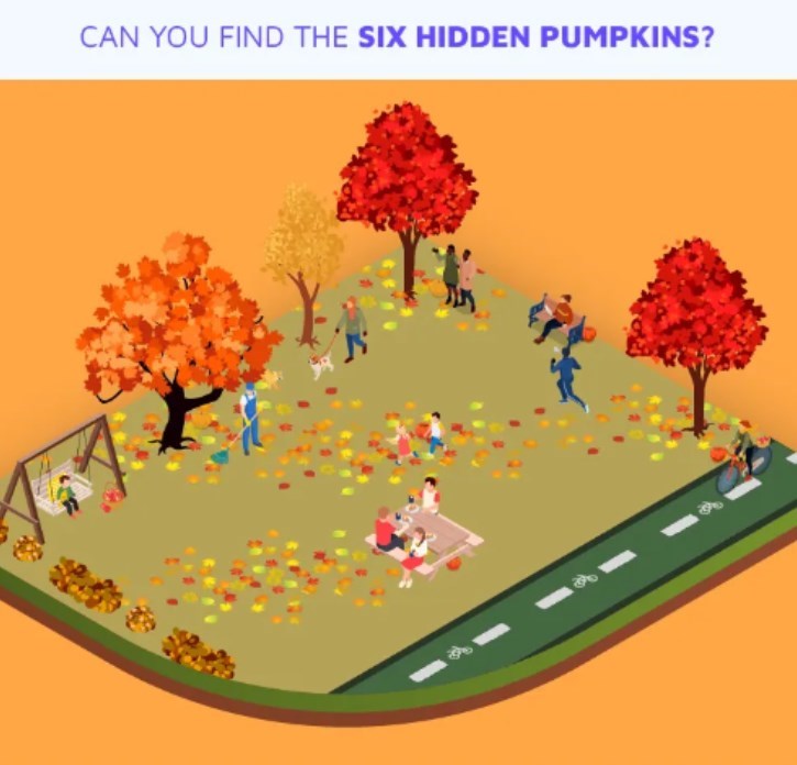 Wenn Langeweile aufkommt, ist es an der Zeit, Rätsel zu lösen. Faszinierende optische Täuschungen helfen dir, dich zu entspannen und deinen Verstand zu trainieren. Dieses Mal müssen wir sechs Kürbisse finden, die auf der Plattform versteckt sind.