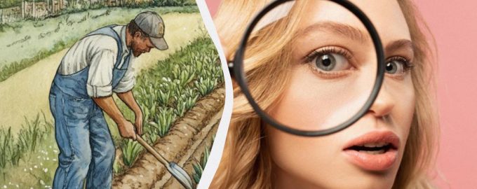 Wir sind sicher, dass Sie diese Aufgabe recht schnell gelöst haben. Es ist ganz einfach: Einer der Männer arbeitet auf dem Feld mit einem gewöhnlichen Besen.