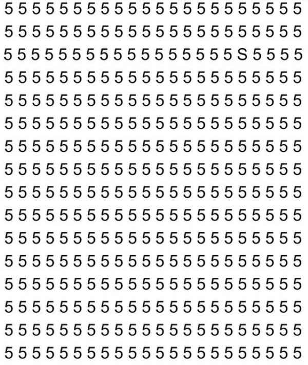 In der folgenden optischen Täuschung müssen Sie den Buchstaben S unter einer großen Anzahl von Ziffern 5 finden, schreibt jagranjosh.