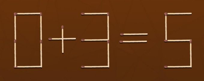 Wie löst man also dieses Rätsel? Du musst ein Streichholz vom „+“-Zeichen auf 0 verschieben, so dass diese Zahl 8 ergibt.