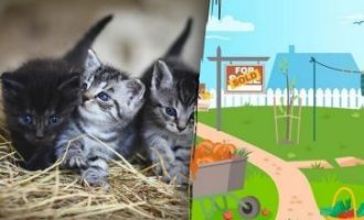 Das Bild zeigt ein Mädchen, das einen schönen Tag im Garten genießt, vor dem Hintergrund eines schönen Hauses und eines grünen Gartens. Es scheint ein gewöhnliches Bild zu sein, aber es gibt ein Detail, das nicht der Realität entspricht.