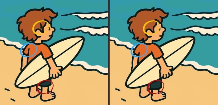 Sind Sie bereit, die Herausforderung anzunehmen? Schauen Sie sich die beiden Bilder des Surfers genau an. Auf den ersten Blick sehen sie genau gleich aus, aber es gibt drei kleine Unterschiede. Kannst du sie in nur 43 Sekunden erkennen?