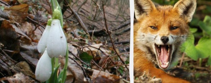 Die Aufgabe ist schwierig und Sie müssen das Bild möglicherweise vergrößern, um sie zu lösen. Sehr schnell finden Sie den Fuchs im Wald / Collage aus Foto depositphotos.